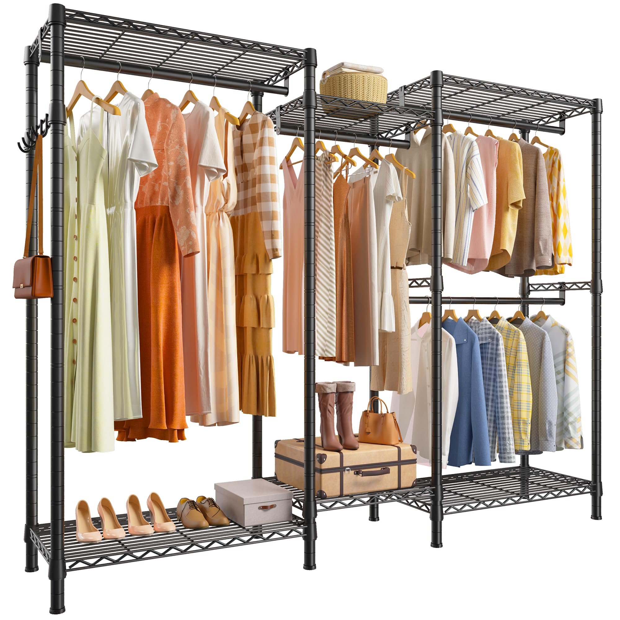 P7 Rolling Clothes Rack, Heavy Duty 3-Tier Closet Organizer, Black